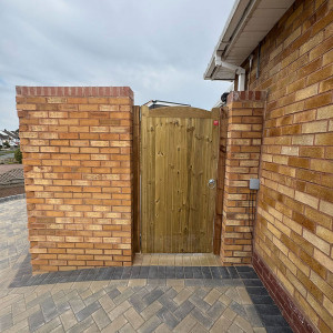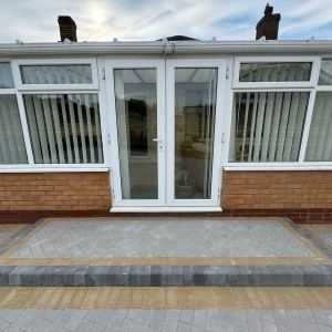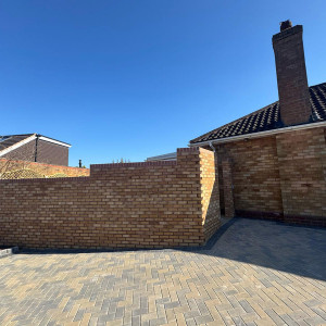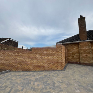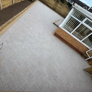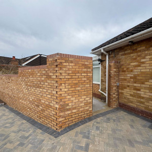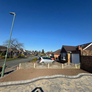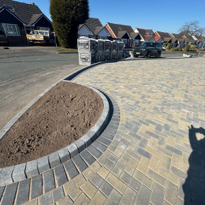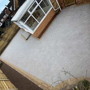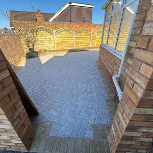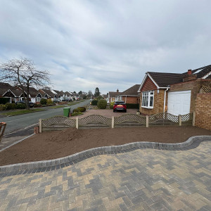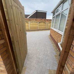 New Block Paving Driveway and Patio, Sutton ColdfieldThe customer wanted to retain some areas for planting both at the front and back of the garden, with generously shaped beds created with contrasting kerb stones which match the driveway border. The garden patio also includes a large step for access to and from the conservatory. A new brick wall has been built to perfectly match the property and includes a new timber garden gate.