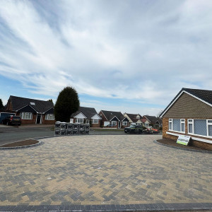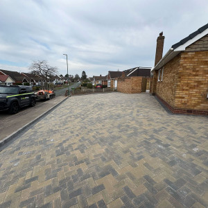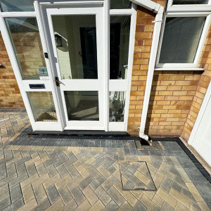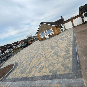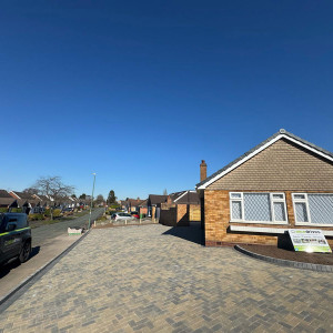 An enormous block paved driveway and patio which wraps around this bungalow in Sutton Coldfield. Whilst the choice of blocks differed front to back, there was still a great sense of continuity, and the choice of colour perfectly complemented the property.