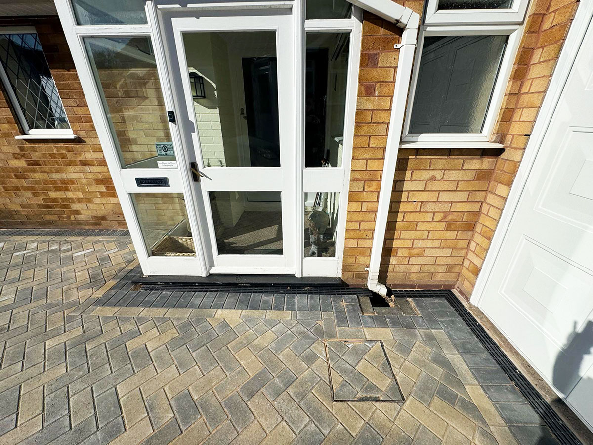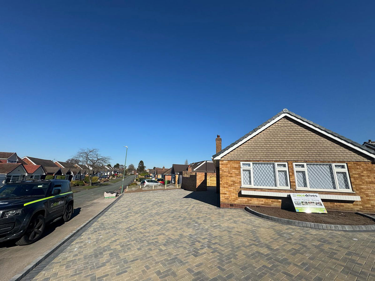 An enormous block paved driveway and patio which wraps around this bungalow in Sutton Coldfield. Whilst the choice of blocks differed front to back, there was still a great sense of continuity, and the choice of colour perfectly complemented the property.