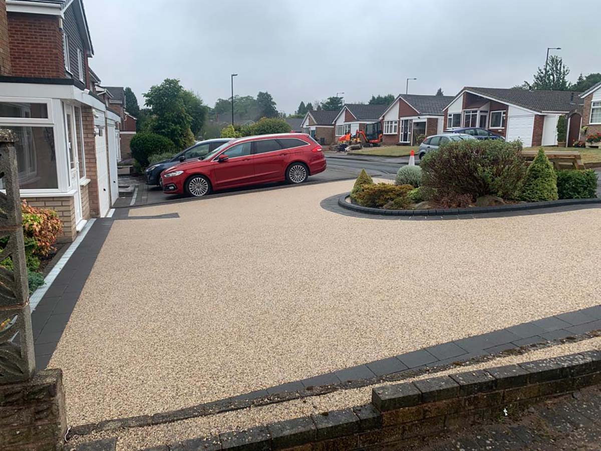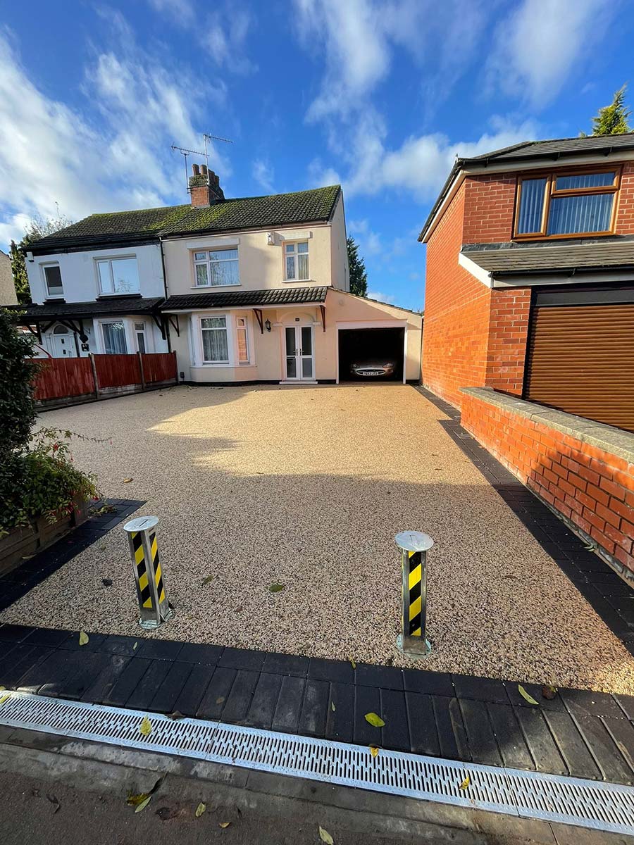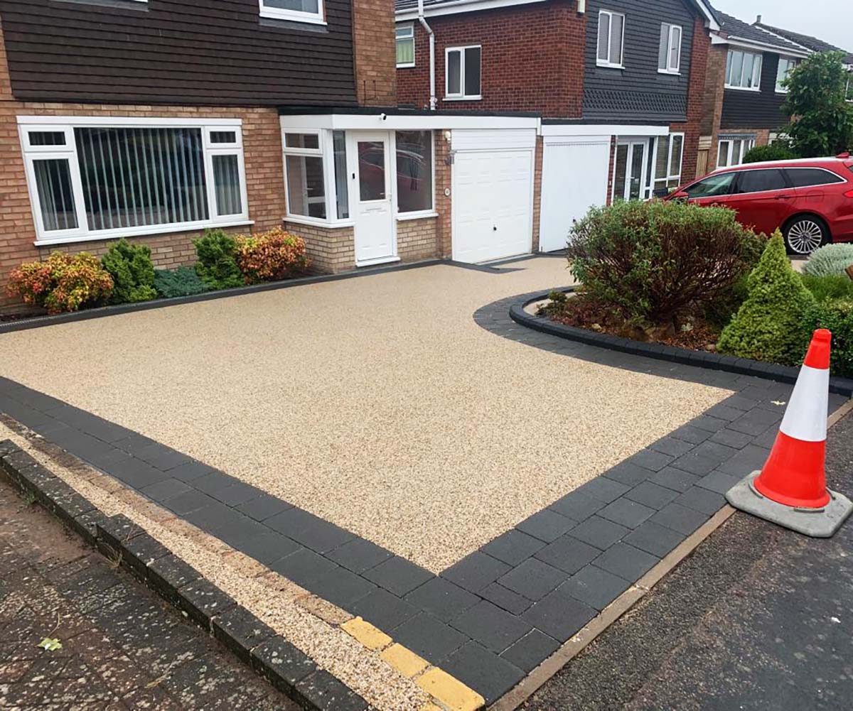 Solihull-based driveway contractors Nice Drives install resin-bound driveways across all areas of Birmingham. Resin has grown to become one of the most popular surfacing options for new driveways. It looks stunning, it’s highly durable and is super low maintenance. As with tarmac, resin-bound drives can look amazing when completed with block paved borders and decorative entrance patterns. If you’d like a free driveway quotation and design consultation please get in touch. All of our driveway installations are guaranteed for 10 years.